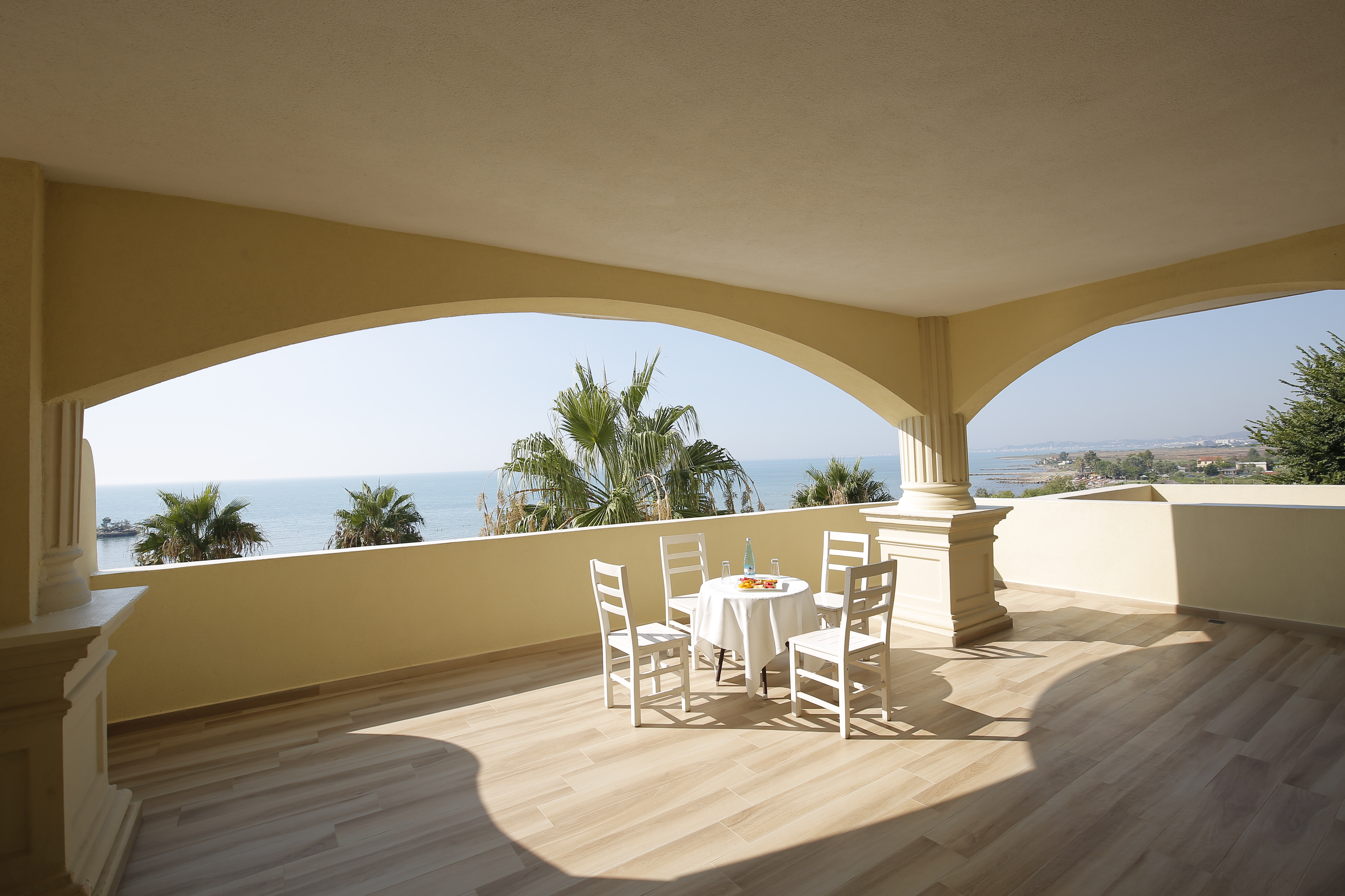Our spacious family room offers the ideal space for an unforgettable family vacation. The generous accommodation is tastefully furnished and features an inviting terrace with direct sea views.