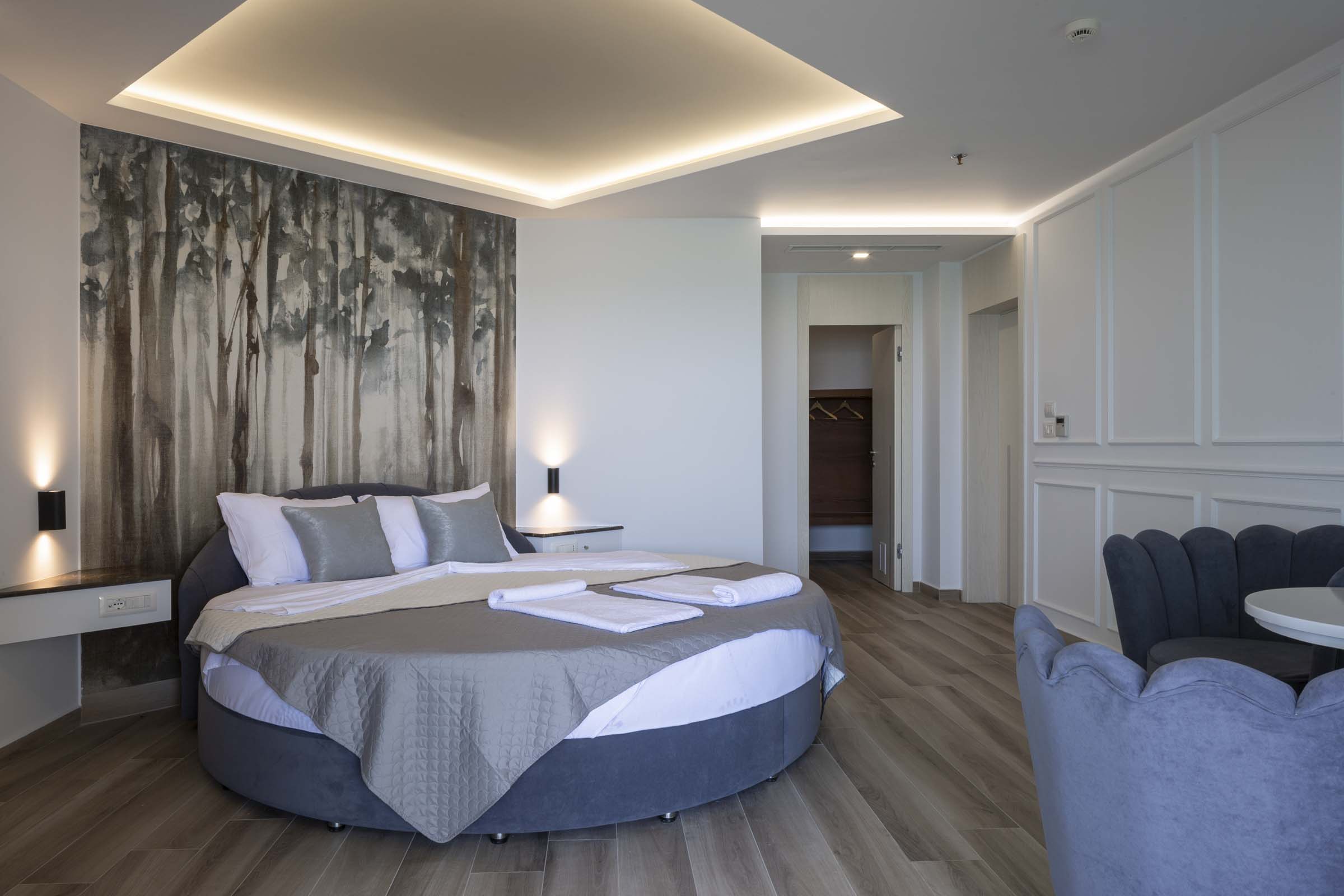 Welcome to our large luxurious suite that will make your stay an unforgettable experience. The heart of the room is a large, round bed, equipped with a perfect mattress that ensures maximum sleeping comfort. Enjoy the breathtaking sea views from the...